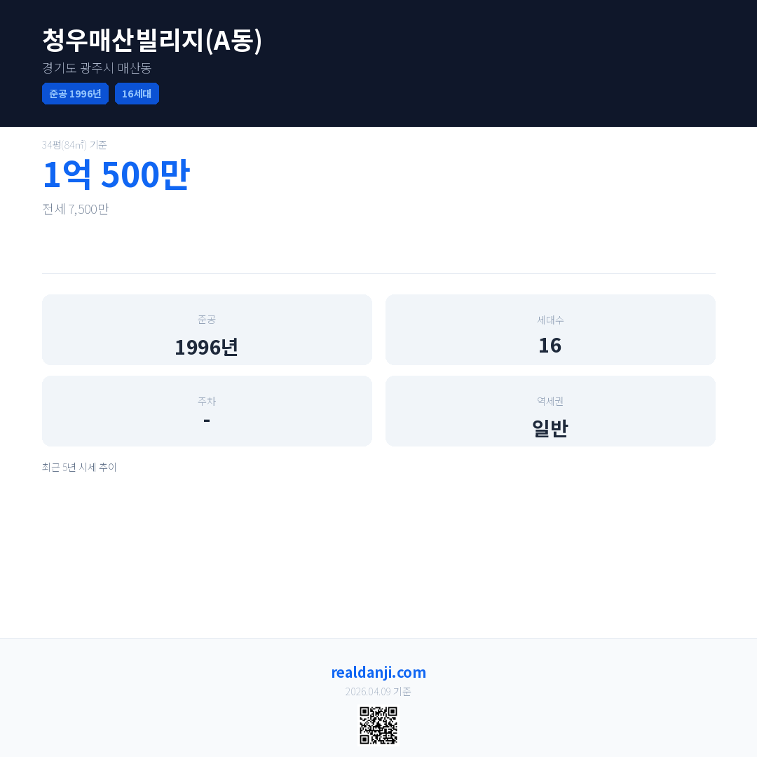 청우매산빌리지(A동)은(는) 1996년에 준공되었으며, 현재 30년차입니다. 총 16세대 규모입니다.