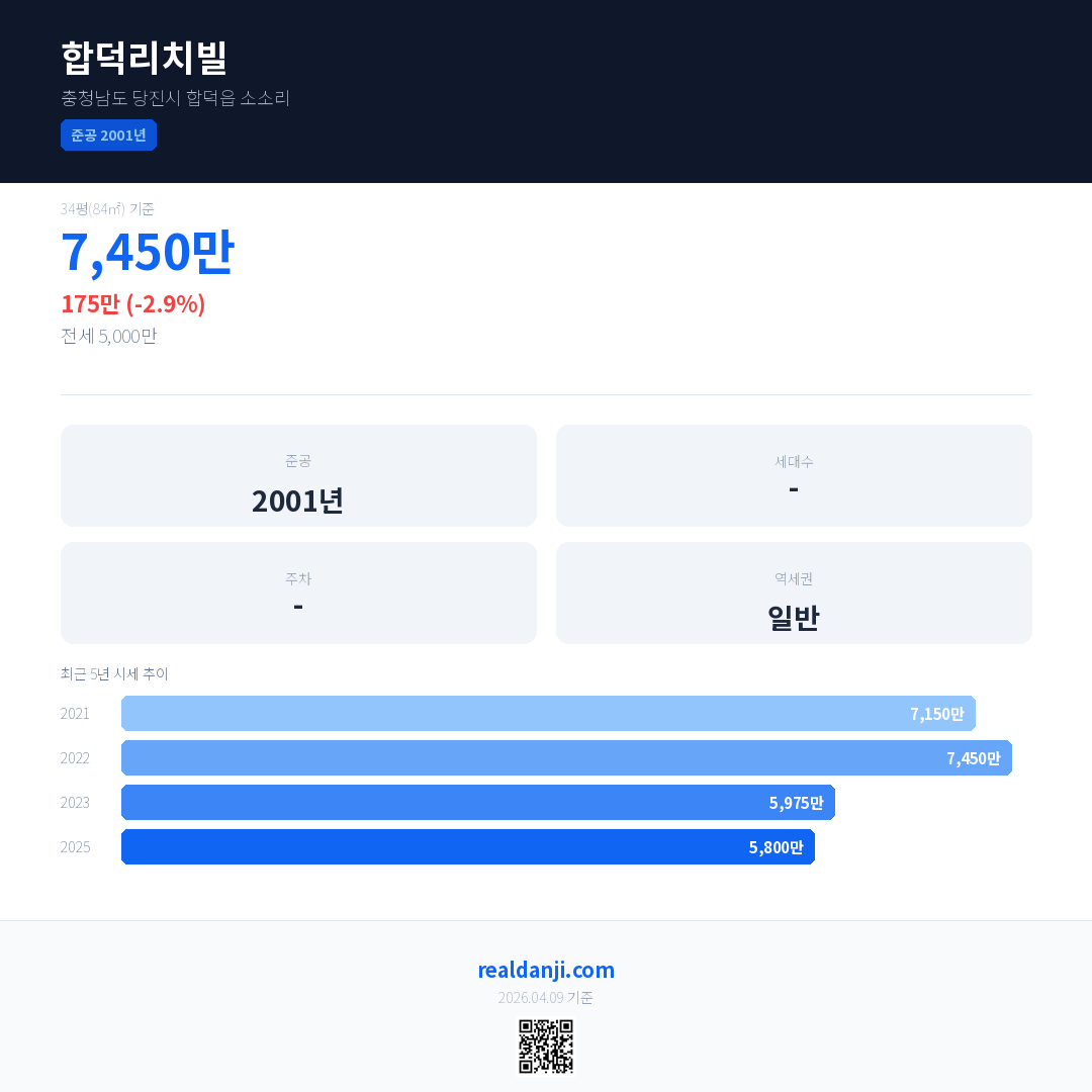 합덕리치빌 최근 거래가는 7,450만입니다. (2025-07)