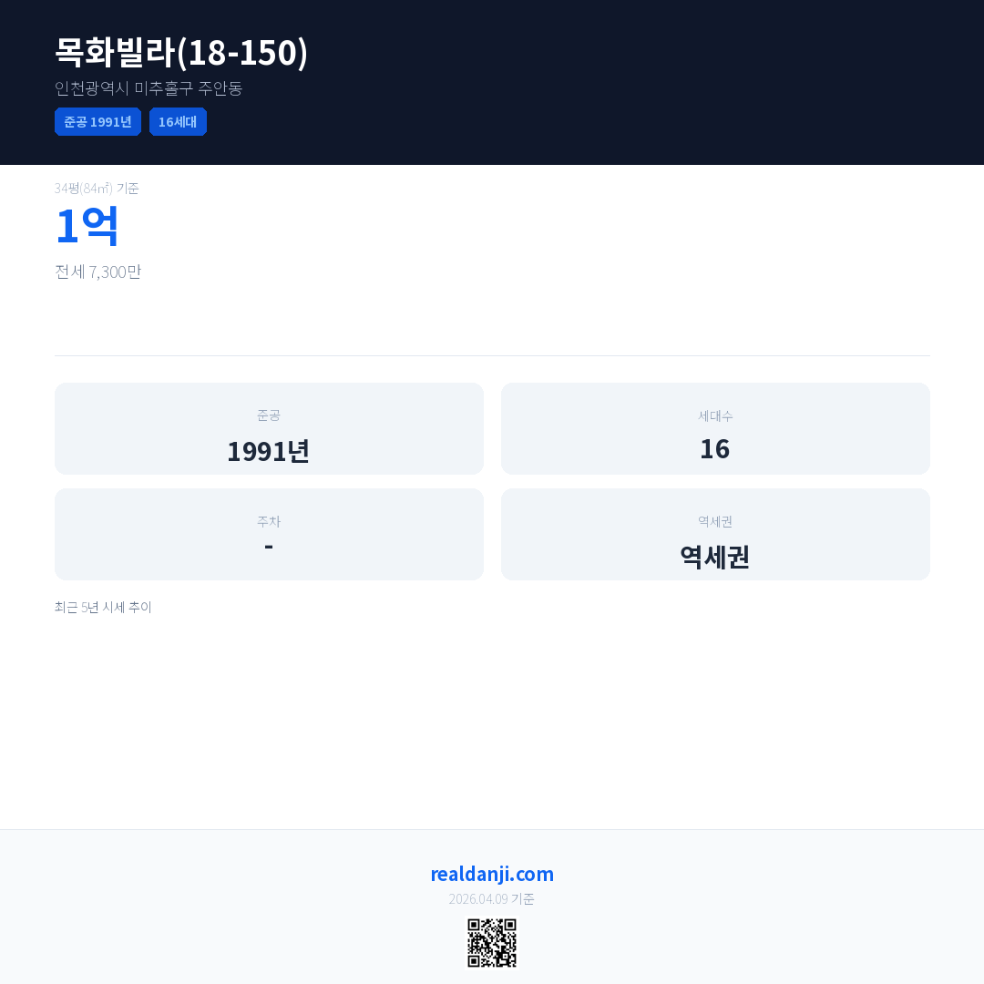 목화빌라(18-150) 최근 거래가는 7,200만입니다. (2026-04)