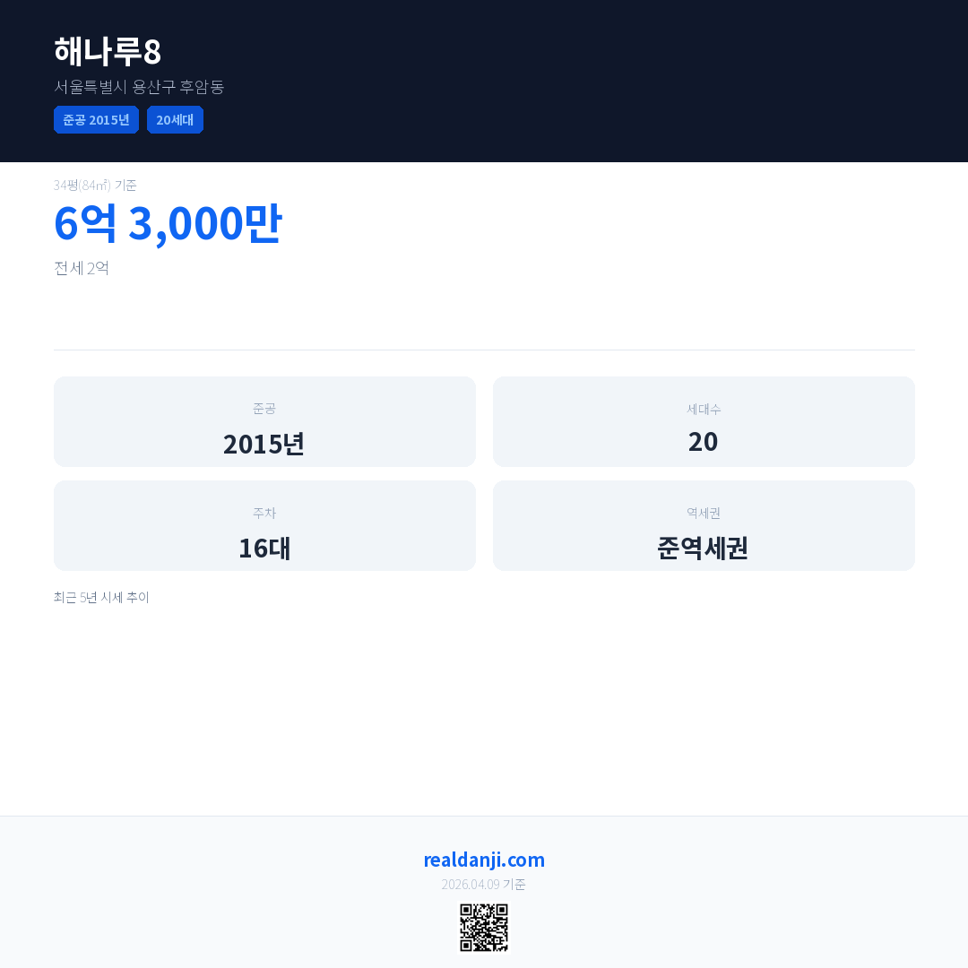 해나루8 최근 거래가는 6억 3,000만입니다. (2020-01)