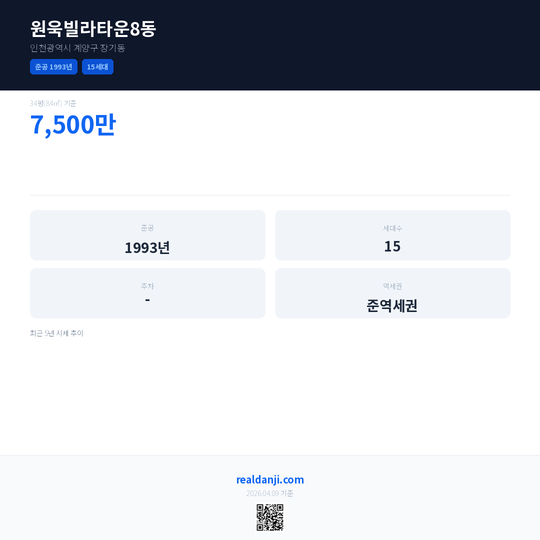 원욱빌라타운8동 최근 거래가는 7,500만입니다. (2025-05)