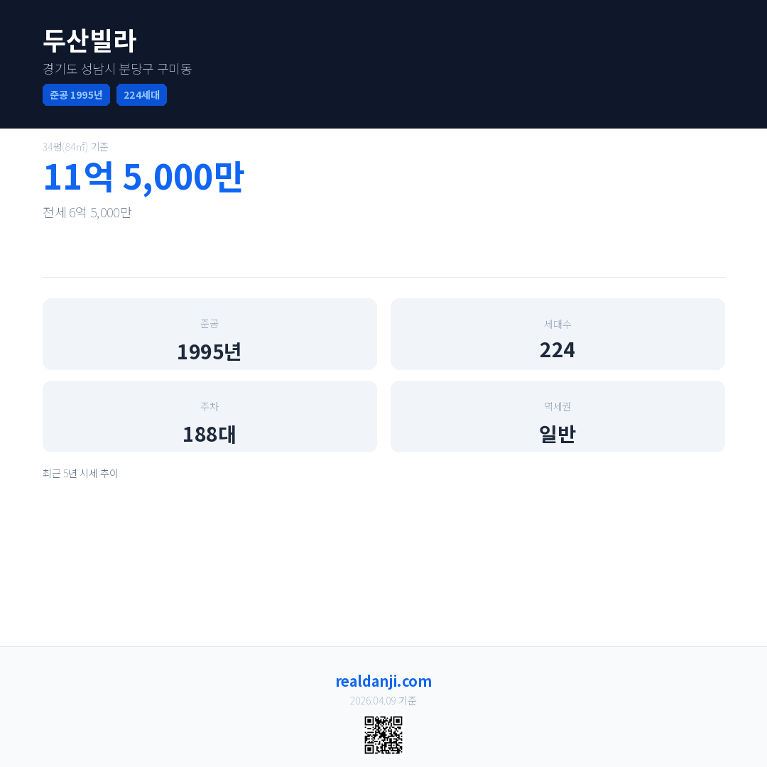 두산빌라 최근 거래가는 11억 5,000만입니다. (2026-01)