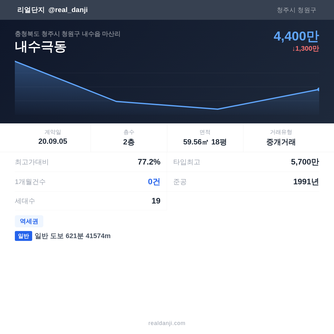 내수극동 최근 거래가는 5,700만입니다. (2020-09)