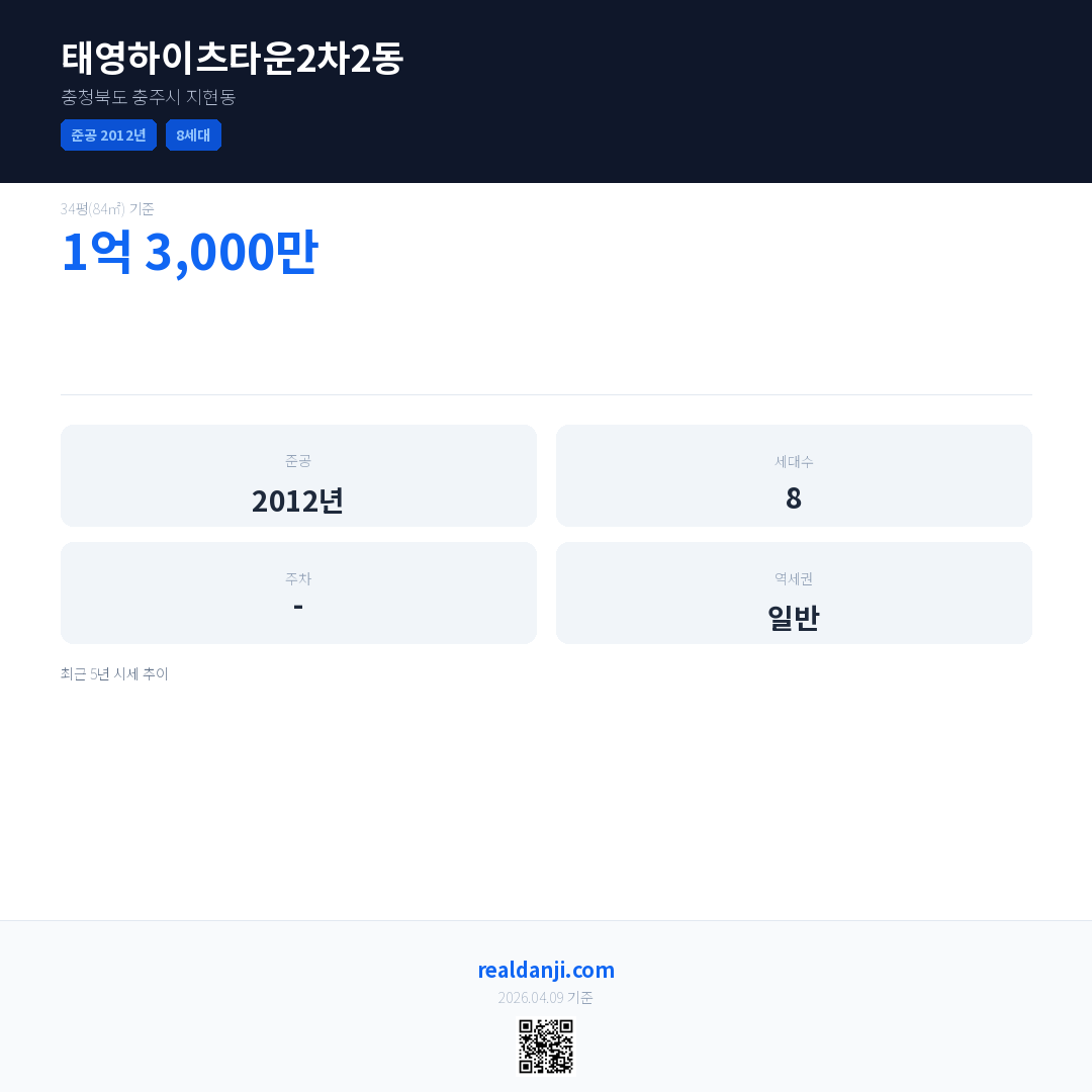 태영하이츠타운2차2동 최근 거래가는 1억 3,000만입니다. (2015-11)