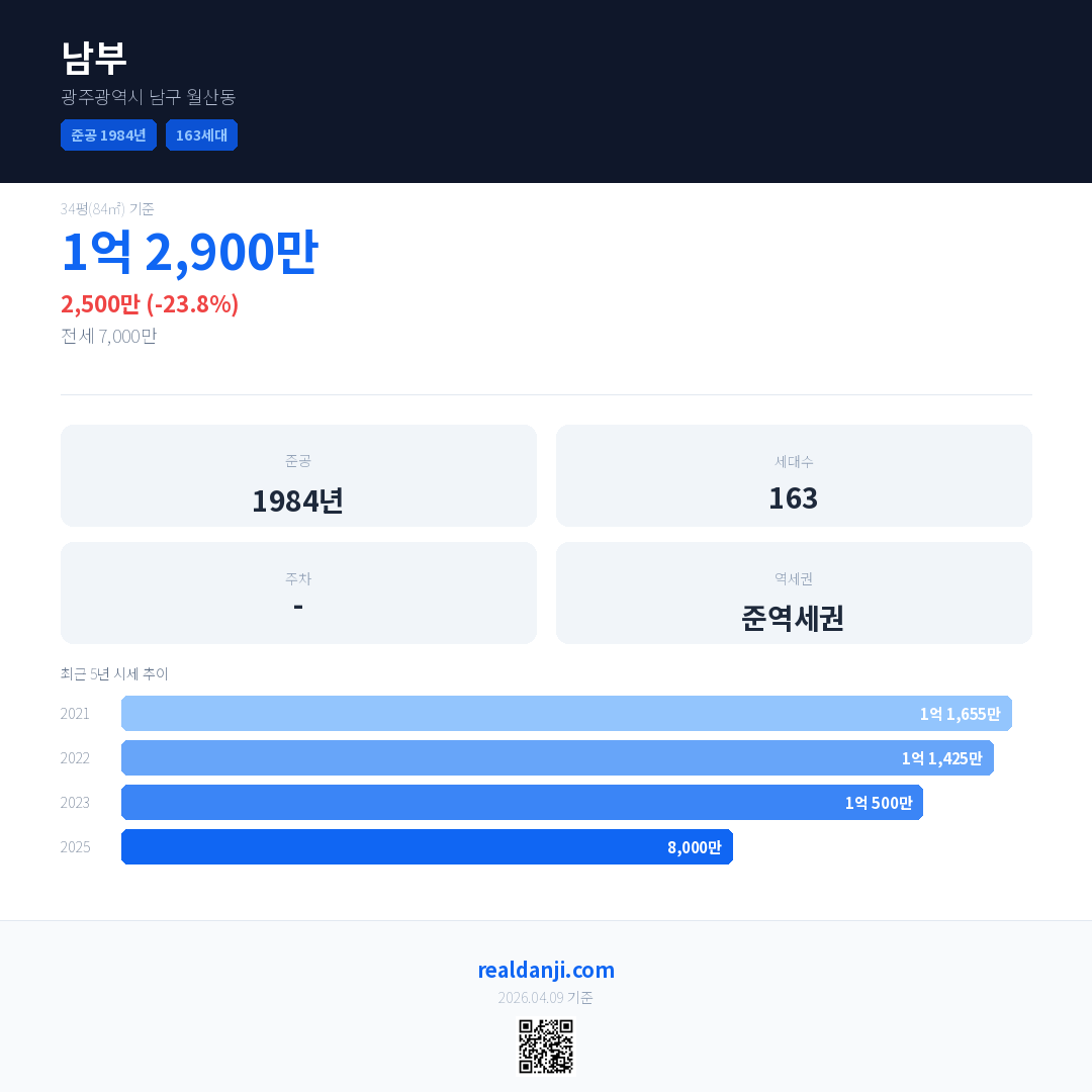 남부 최근 거래가는 1억 2,900만입니다. (2025-07)