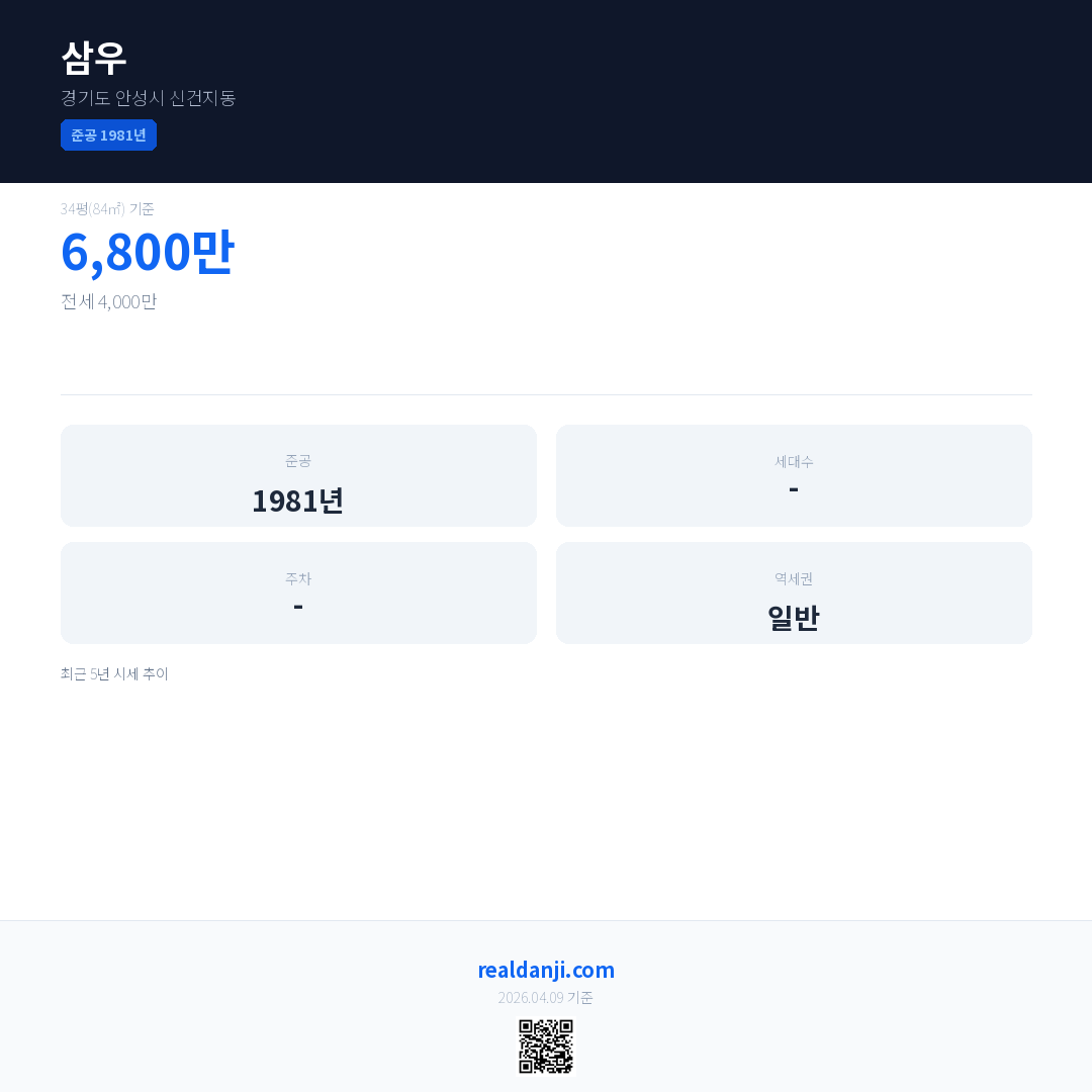 삼우 최근 거래가는 6,800만입니다. (2026-03)