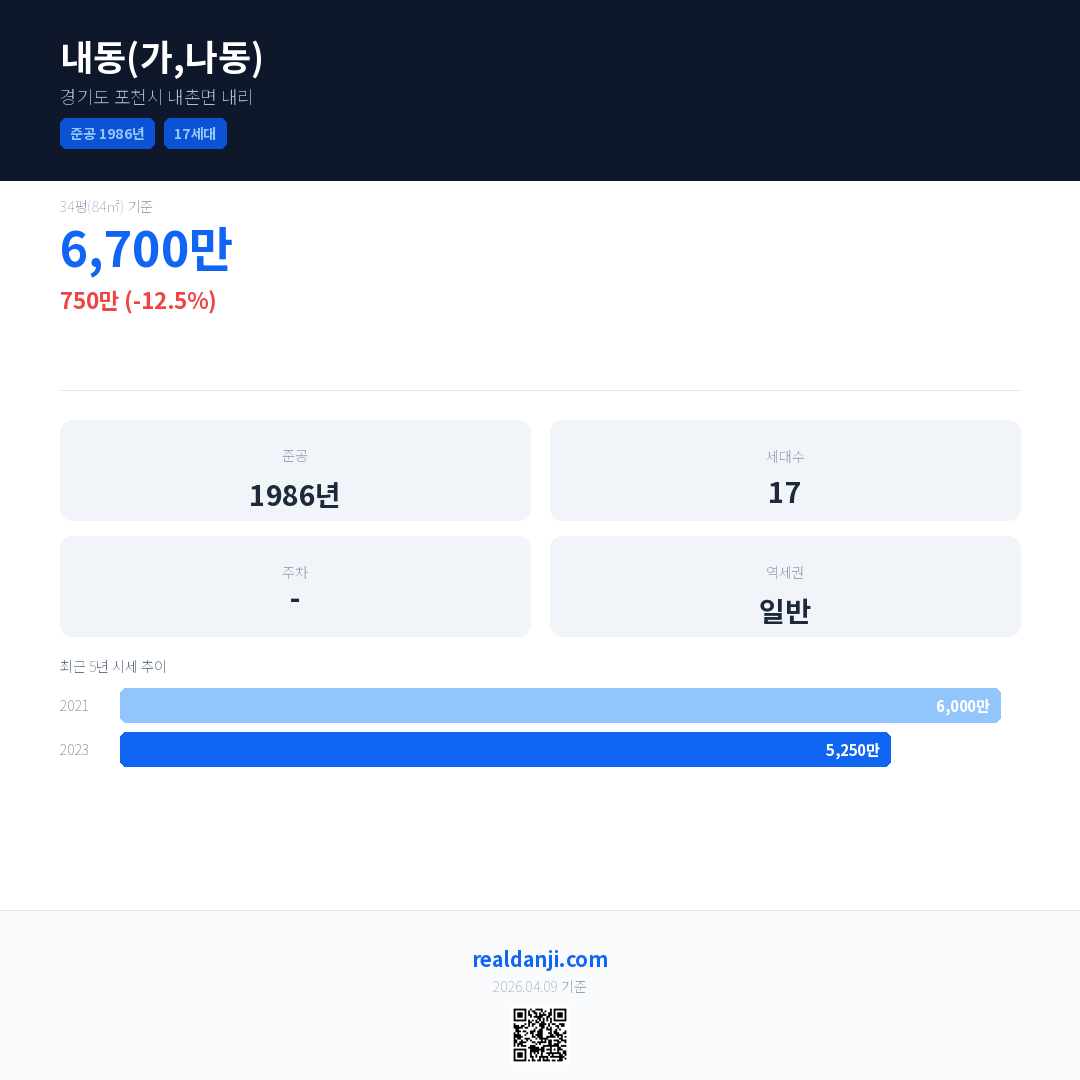 내동(가,나동) 최근 거래가는 6,700만입니다. (2024-11)