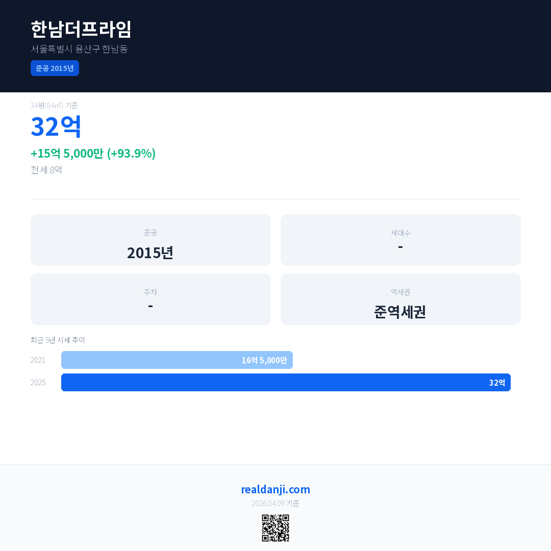 한남더프라임 최근 거래가는 32억입니다. (2025-05)