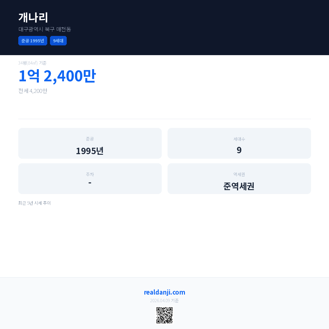 개나리은(는) 1995년에 준공되었으며, 현재 31년차입니다. 총 9세대 규모입니다.