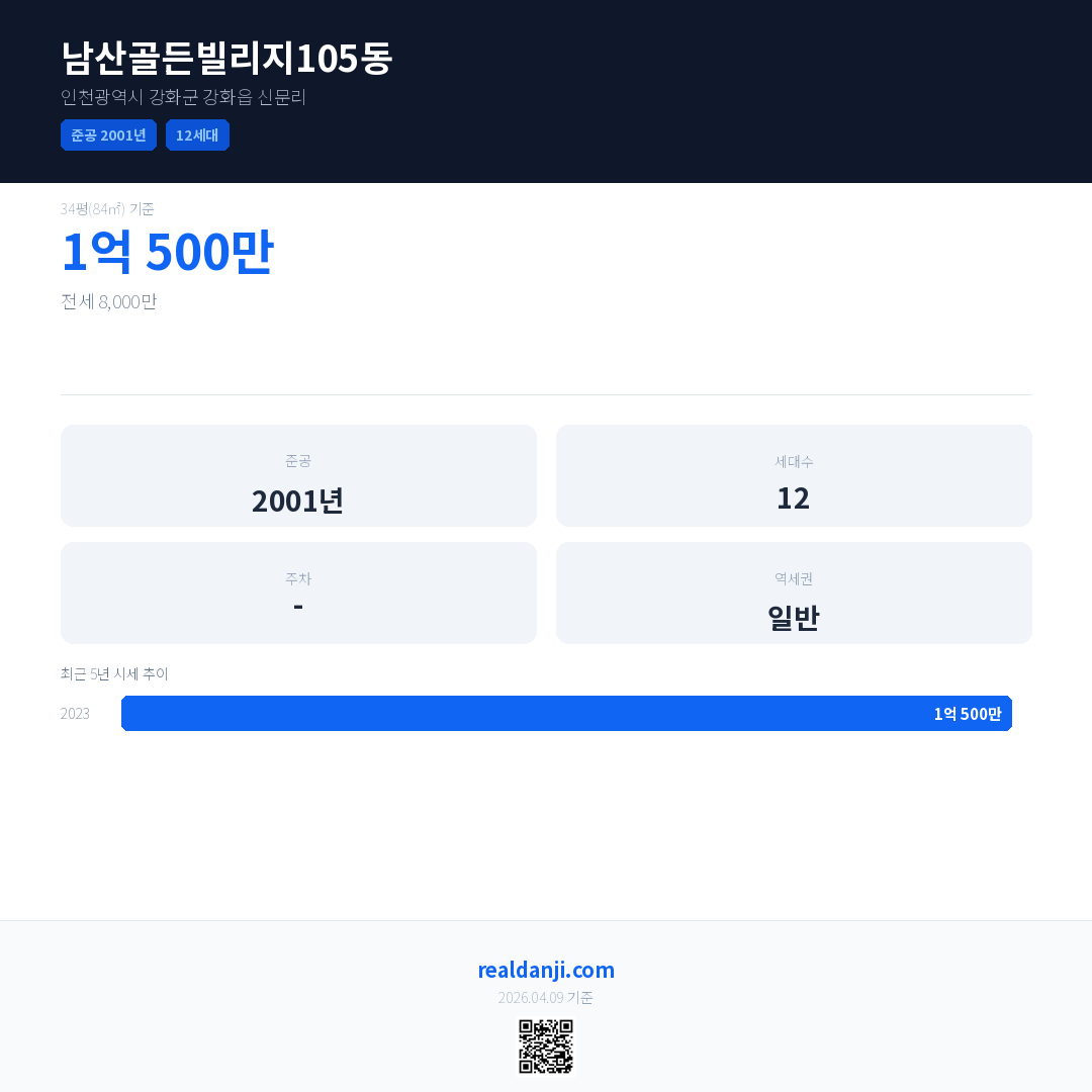 남산골든빌리지105동 국민평형 기준 2023년 평균 거래가는 1억 500만으로, 전년 대비 98.1% 상승 했습니다.