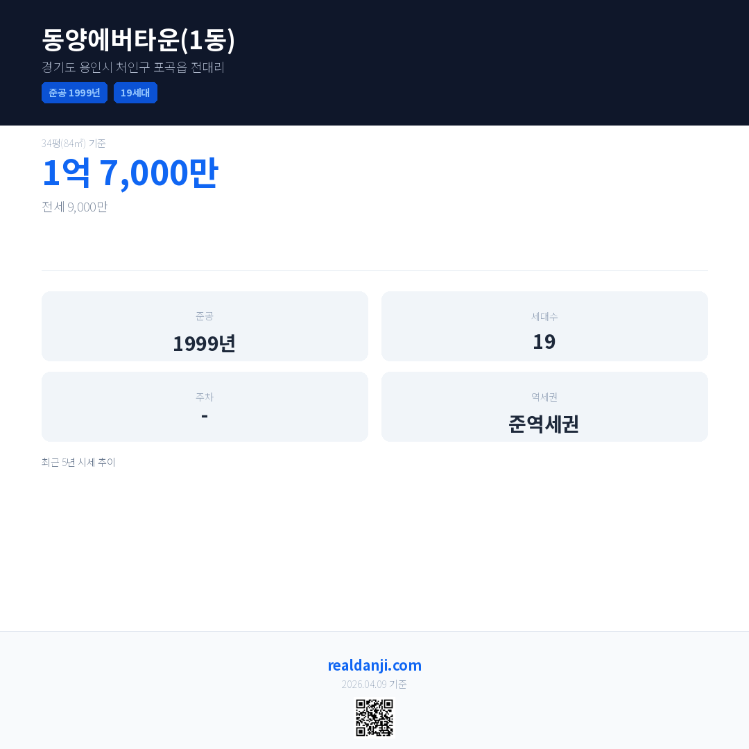 동양에버타운(1동) 최근 거래가는 1억 7,000만입니다. (2020-03)