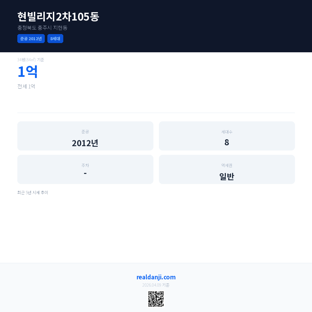 현빌리지2차105동 최근 거래가는 1억입니다. (2020-04)