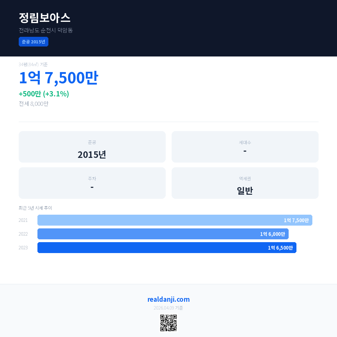 정림보아스 최근 거래가는 1억 7,500만입니다. (2023-11)