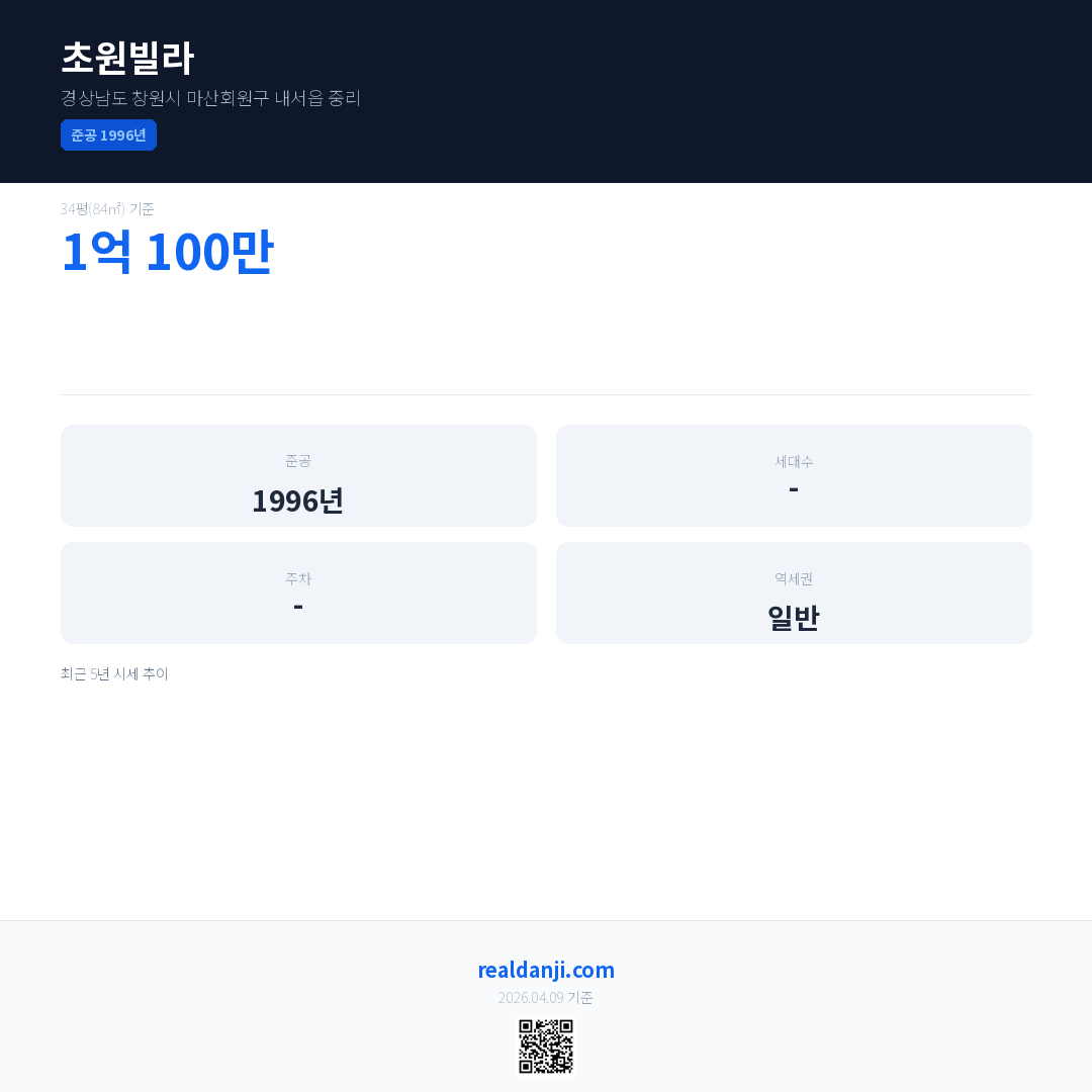 초원빌라 최근 거래가는 1억 100만입니다. (2015-07)
