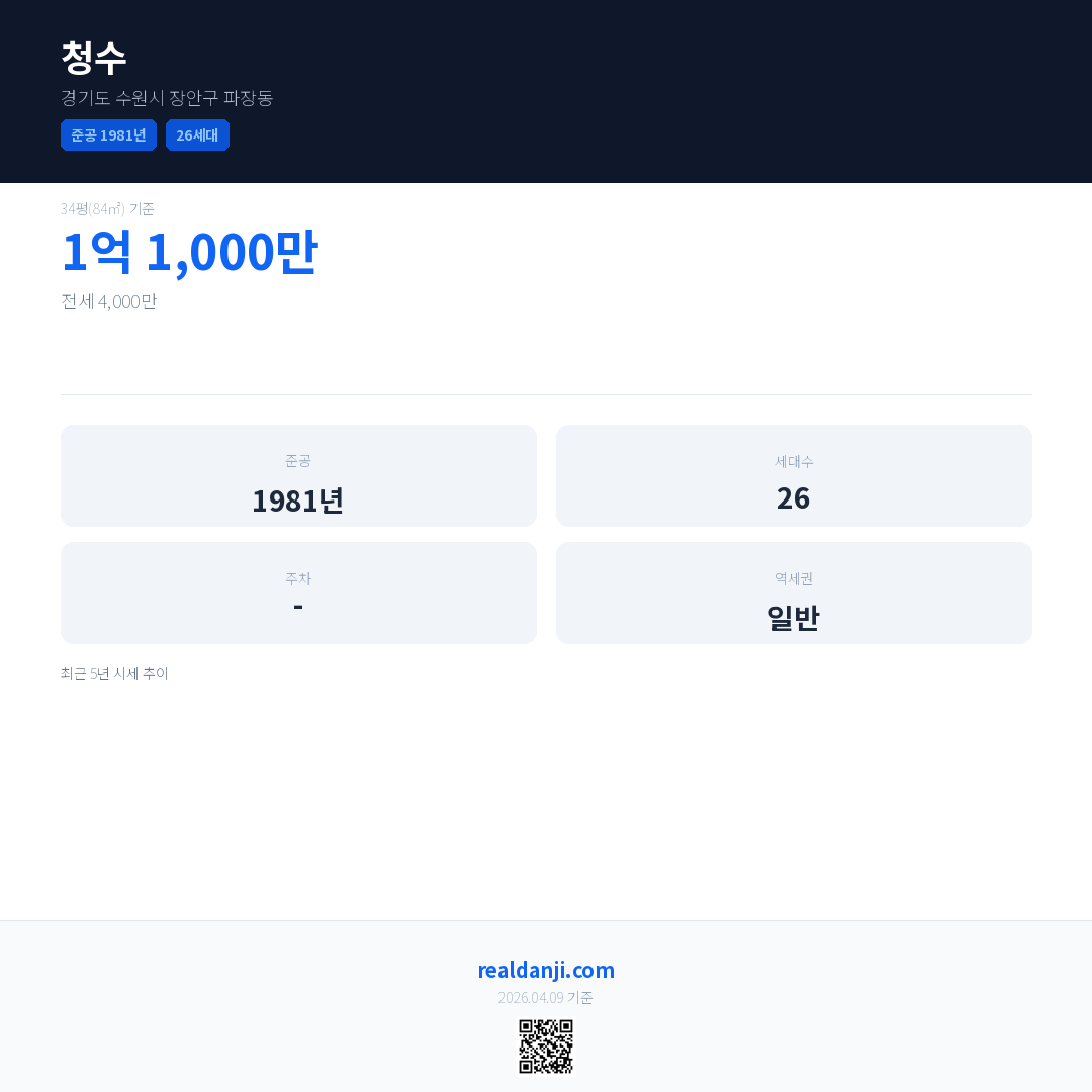 청수은(는) 1981년에 준공되었으며, 현재 45년차입니다. 총 26세대 규모입니다.