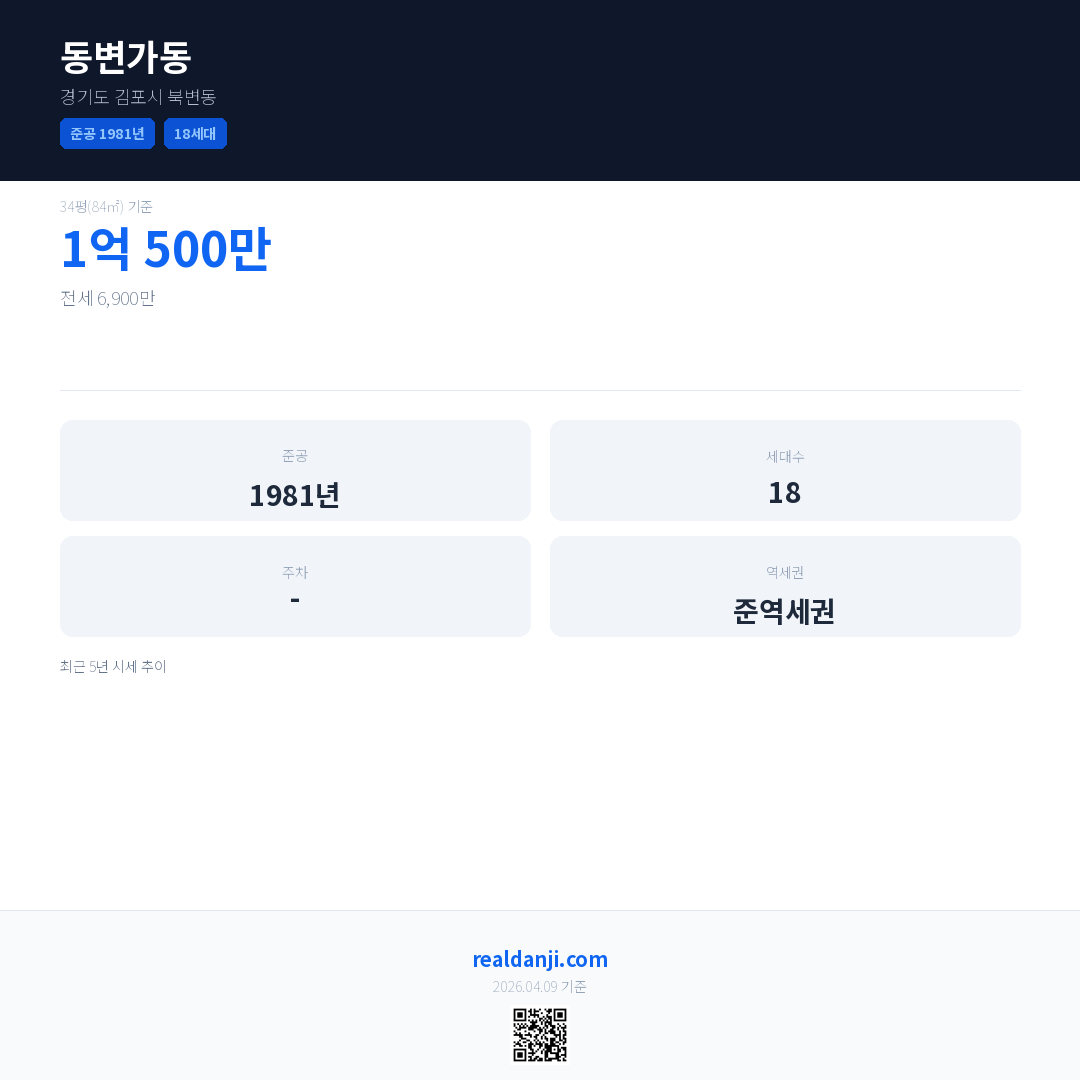 동변가동은(는) 1981년에 준공되었으며, 현재 45년차입니다. 총 18세대 규모입니다.