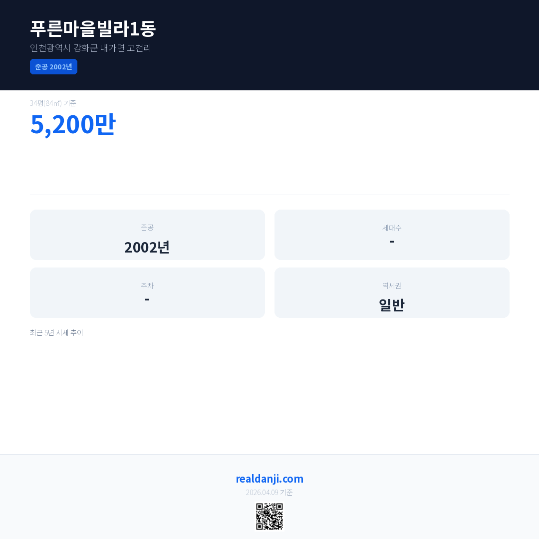 푸른마을빌라1동 최근 거래가는 4,200만입니다. (2025-10)