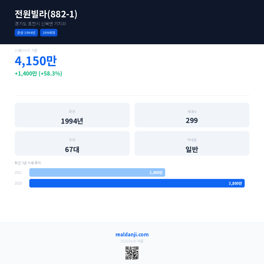 전원빌라(882-1) 최근 거래가는 4,150만입니다. (2025-10)