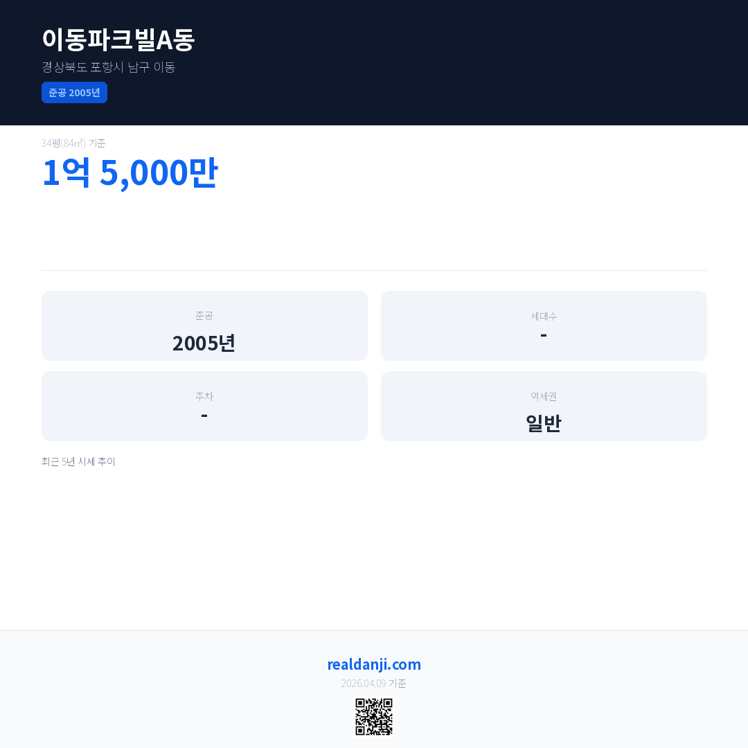 이동파크빌A동은(는) 2005년에 준공되었으며, 현재 21년차입니다.