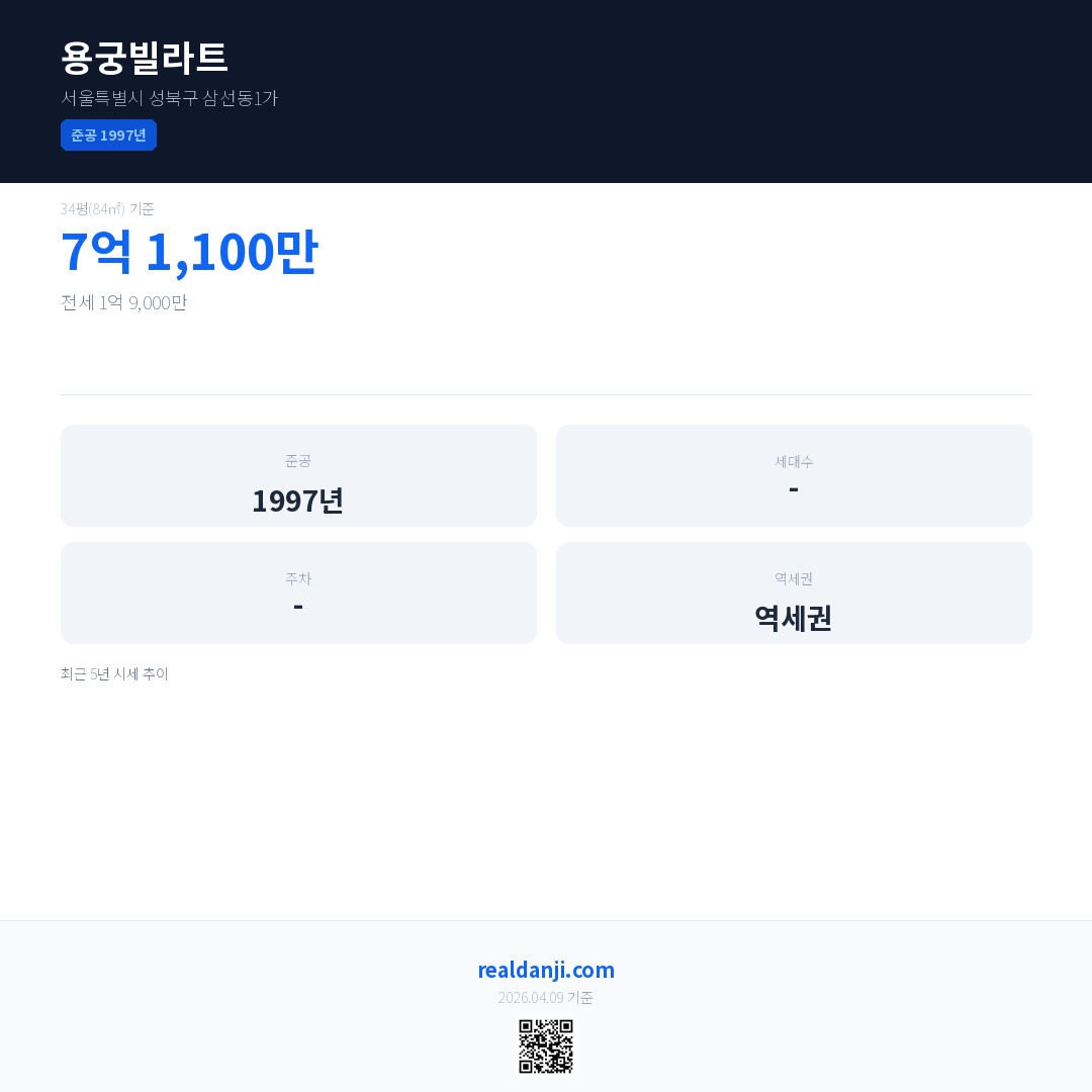 용궁빌라트은(는) 1997년에 준공되었으며, 현재 29년차입니다.