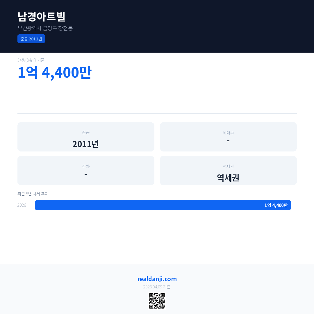 남경아트빌 최근 거래가는 1억 4,400만입니다. (2015-10)
