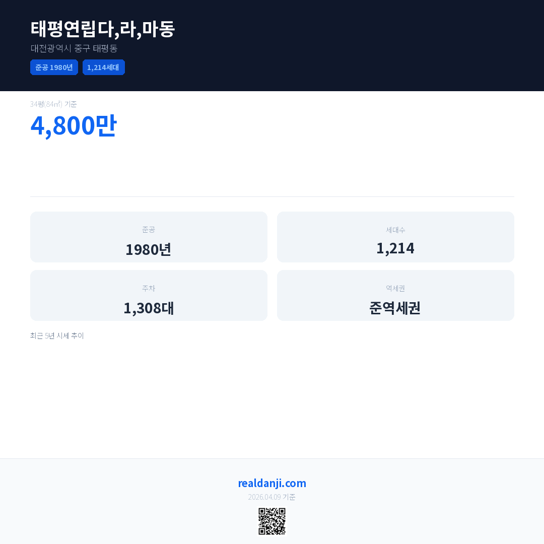 태평연립다,라,마동은(는) 1980년에 준공되었으며, 현재 46년차입니다. 총 1,214세대 규모입니다.