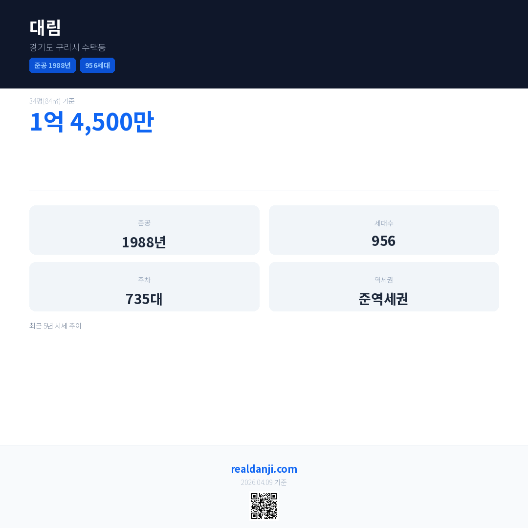 대림은(는) 1988년에 준공되었으며, 현재 38년차입니다. 총 956세대 규모입니다.
