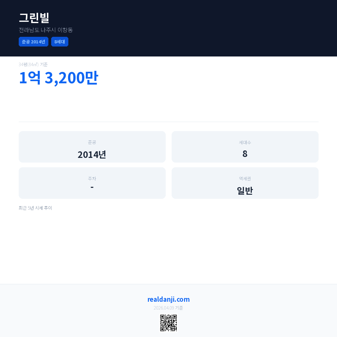 그린빌 최근 거래가는 1억 3,200만입니다. (2019-05)