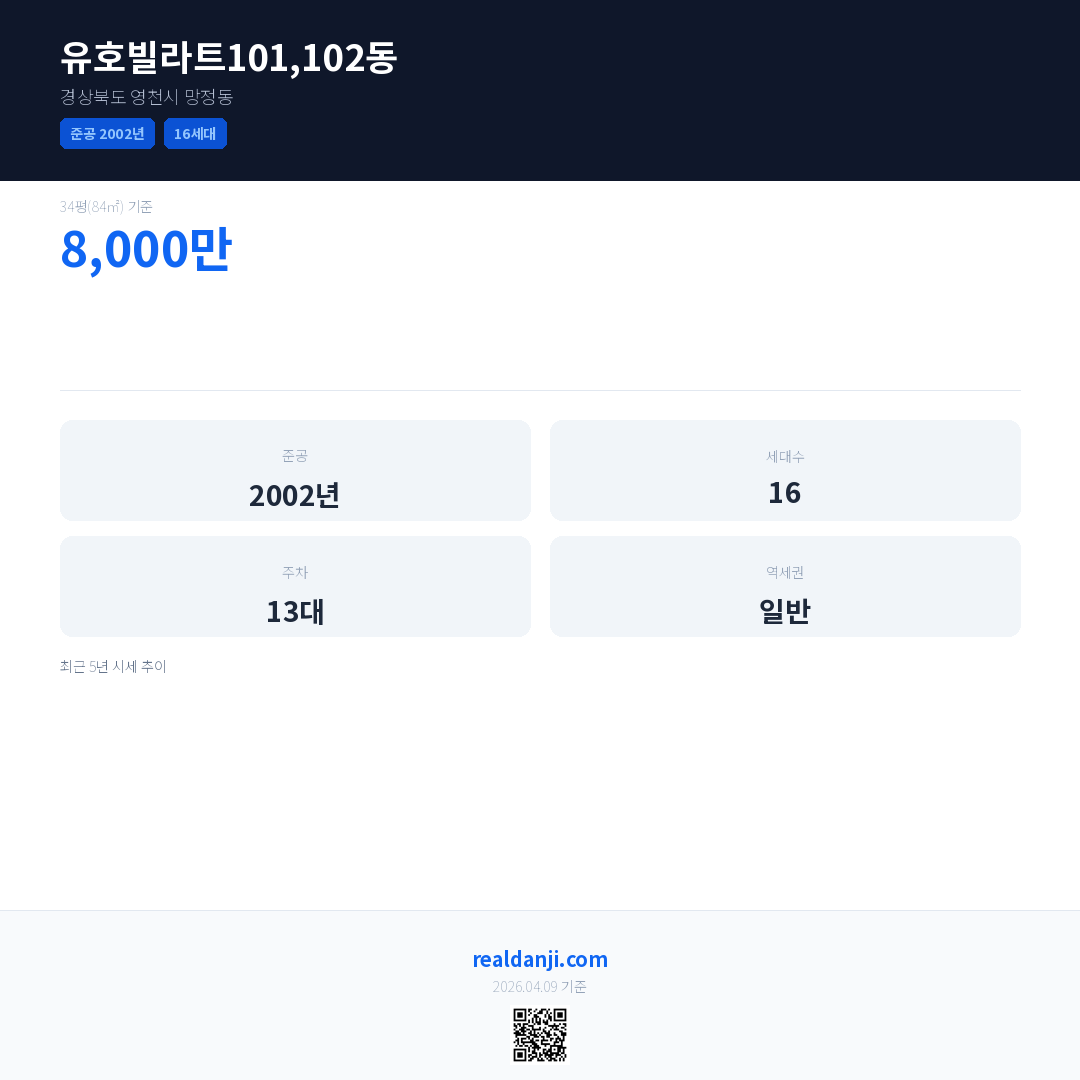 유호빌라트101,102동 최근 거래가는 1억 600만입니다. (2020-03)