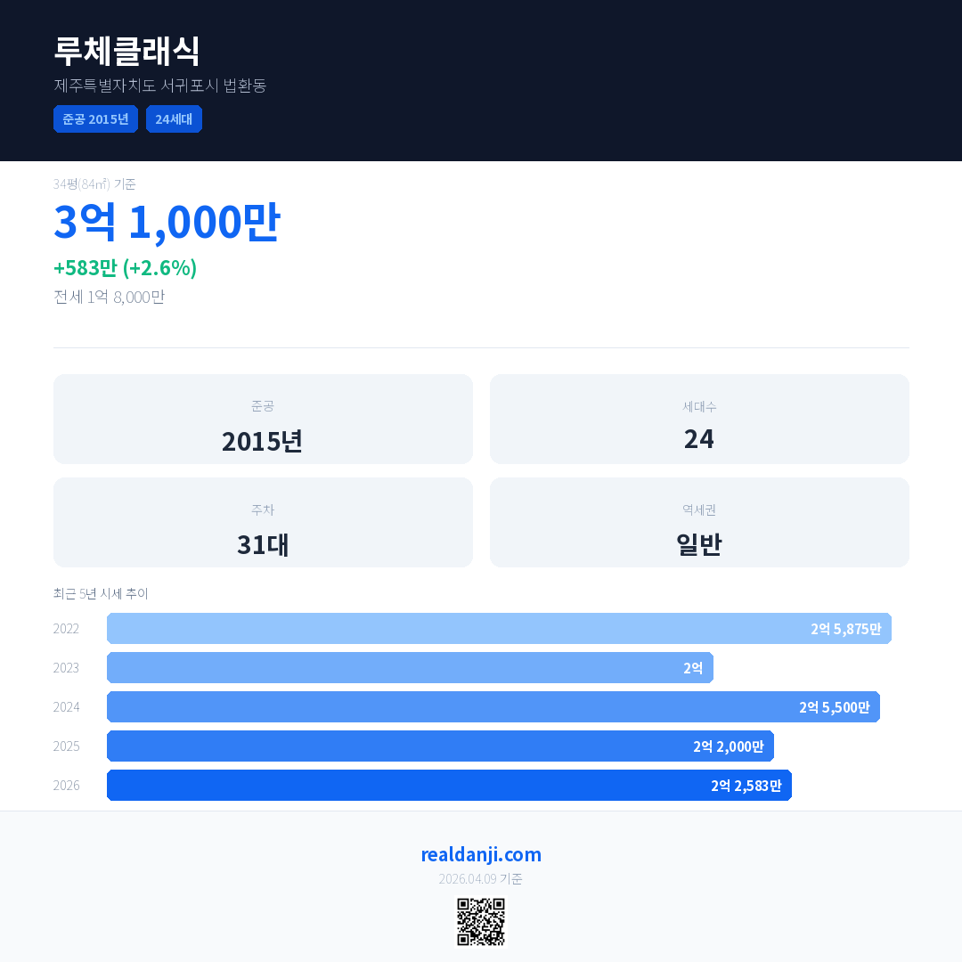 루체클래식 국민평형 기준 2026년 평균 거래가는 2억 2,583만으로, 전년 대비 2.6% 상승 했습니다.