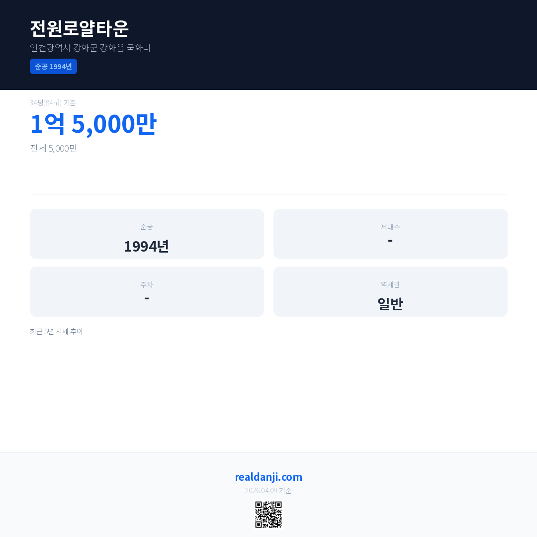 전원로얄타운 최근 거래가는 1억 500만입니다. (2025-11)