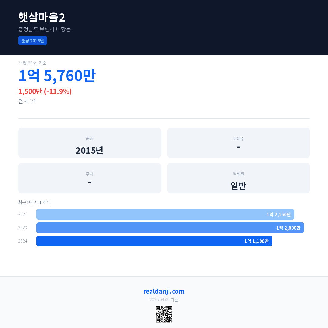햇살마을2은(는) 2015년에 준공되었으며, 현재 11년차입니다.