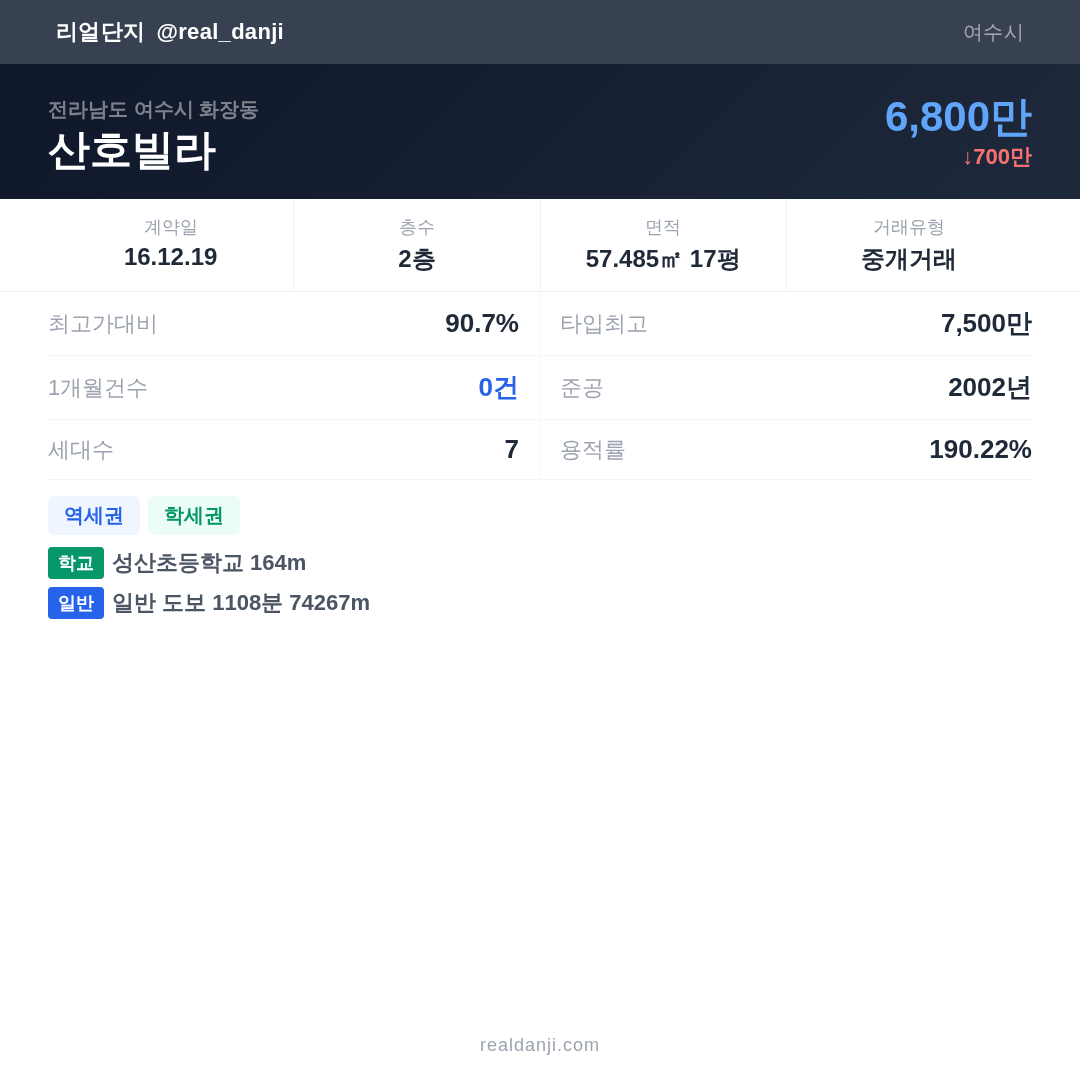 | 2016.12.19 | 57㎡ | 2층 | 6,800만 |