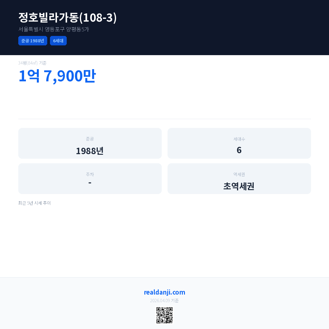 정호빌라가동(108-3) 최근 거래가는 1억 7,900만입니다. (2017-12)