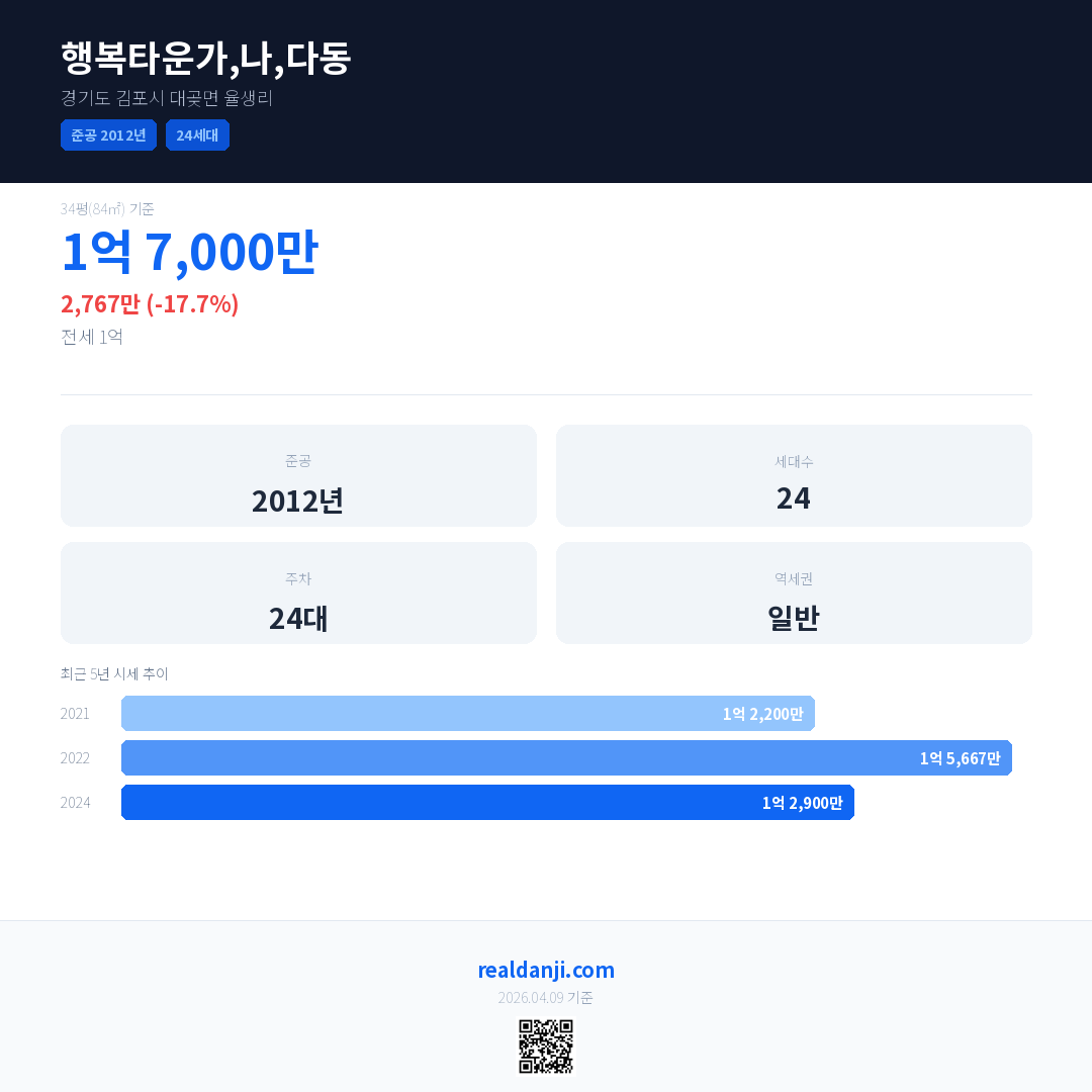 행복타운가,나,다동 최근 거래가는 1억 7,000만입니다. (2024-12)