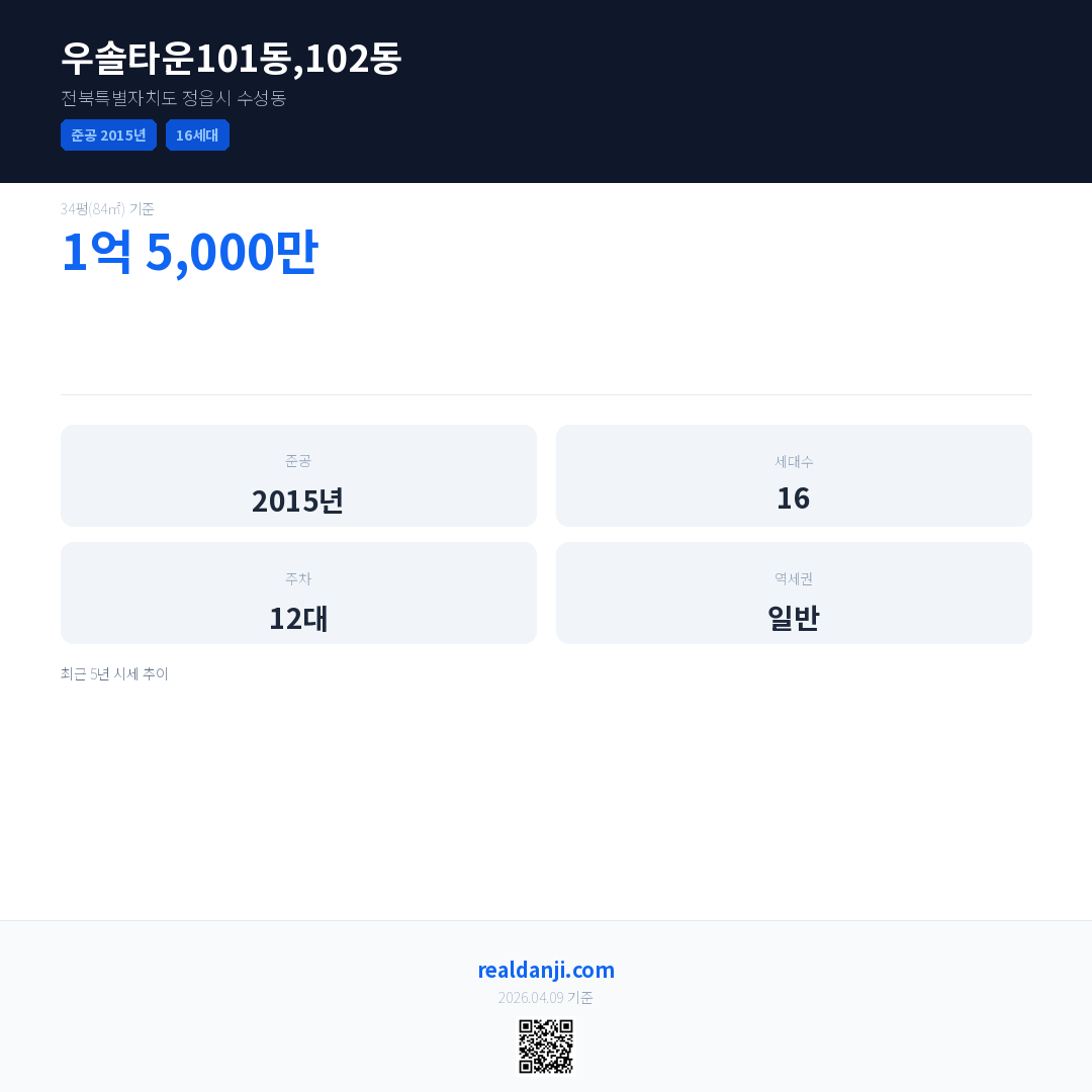 우솔타운101동,102동 최근 거래가는 1억 5,000만입니다. (2019-11)