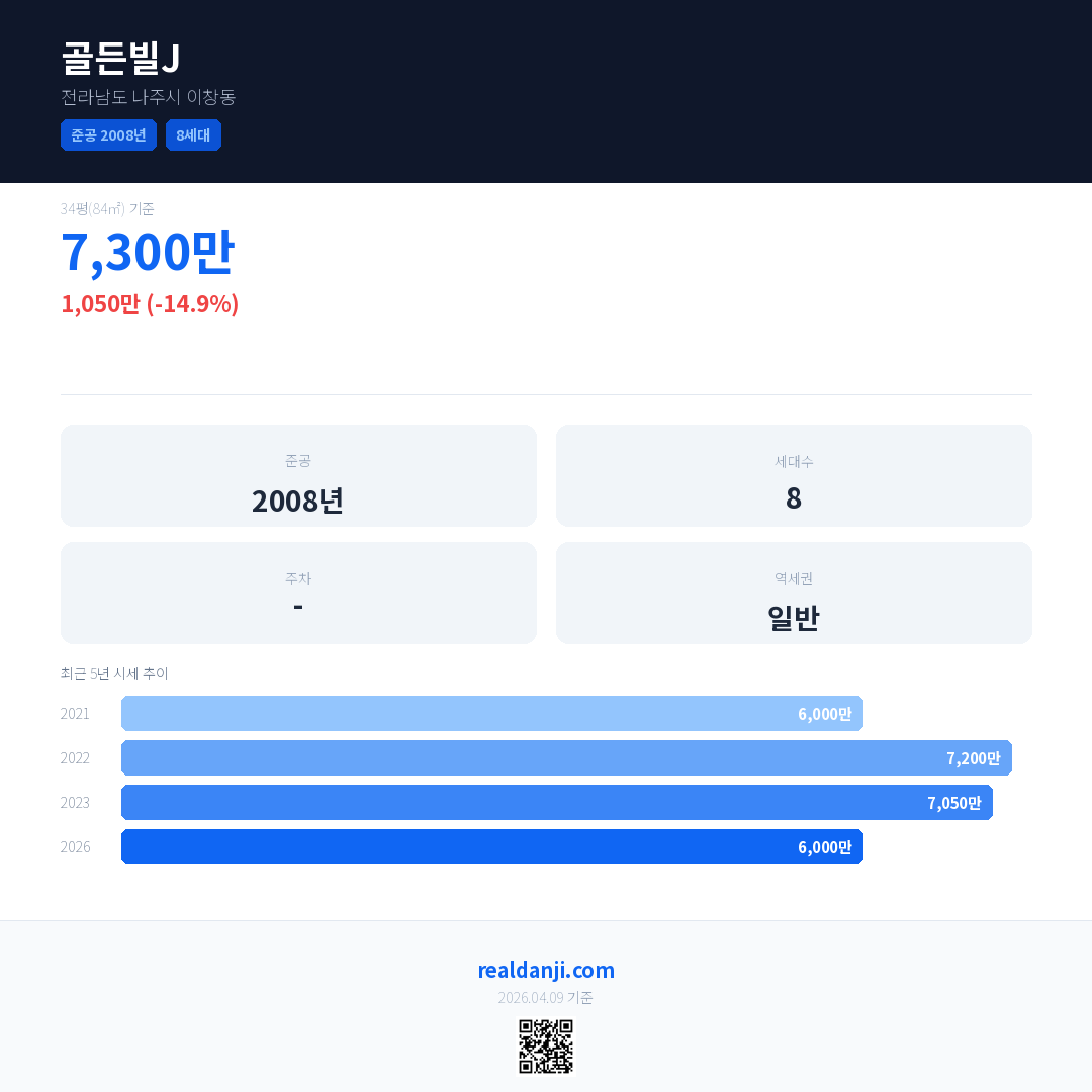 골든빌J 최근 거래가는 7,300만입니다. (2026-03)