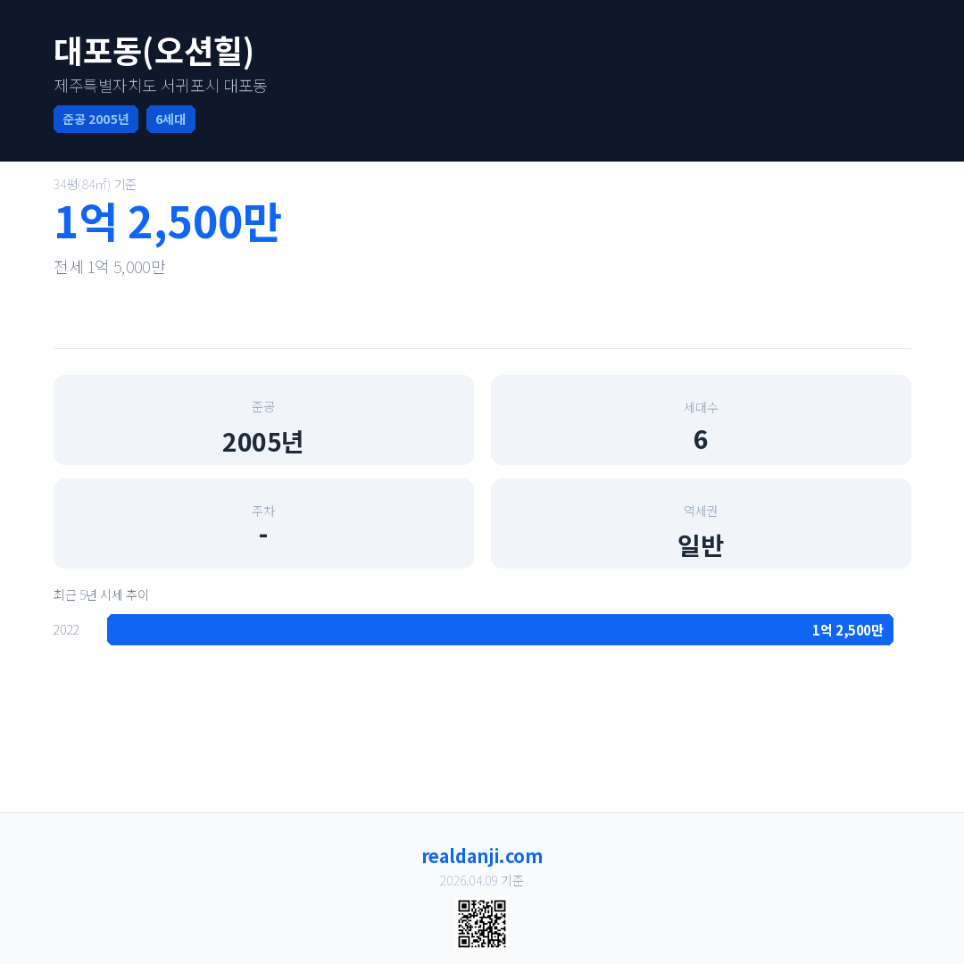 대포동(오션힐) 최근 거래가는 1억 2,500만입니다. (2022-03)