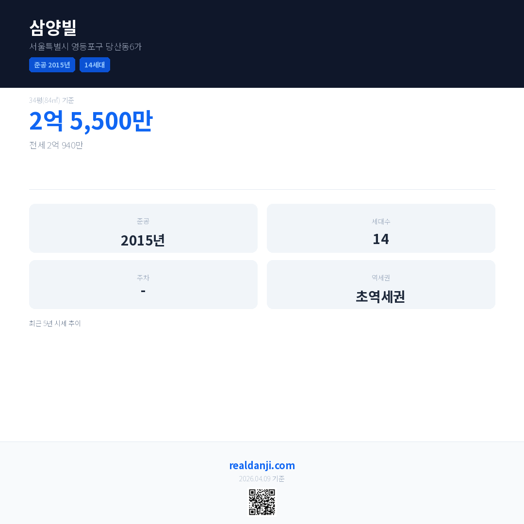 삼양빌 국민평형 기준 2016년 평균 거래가는 2억 5,500만으로, 전년 대비 37.8% 상승 했습니다.