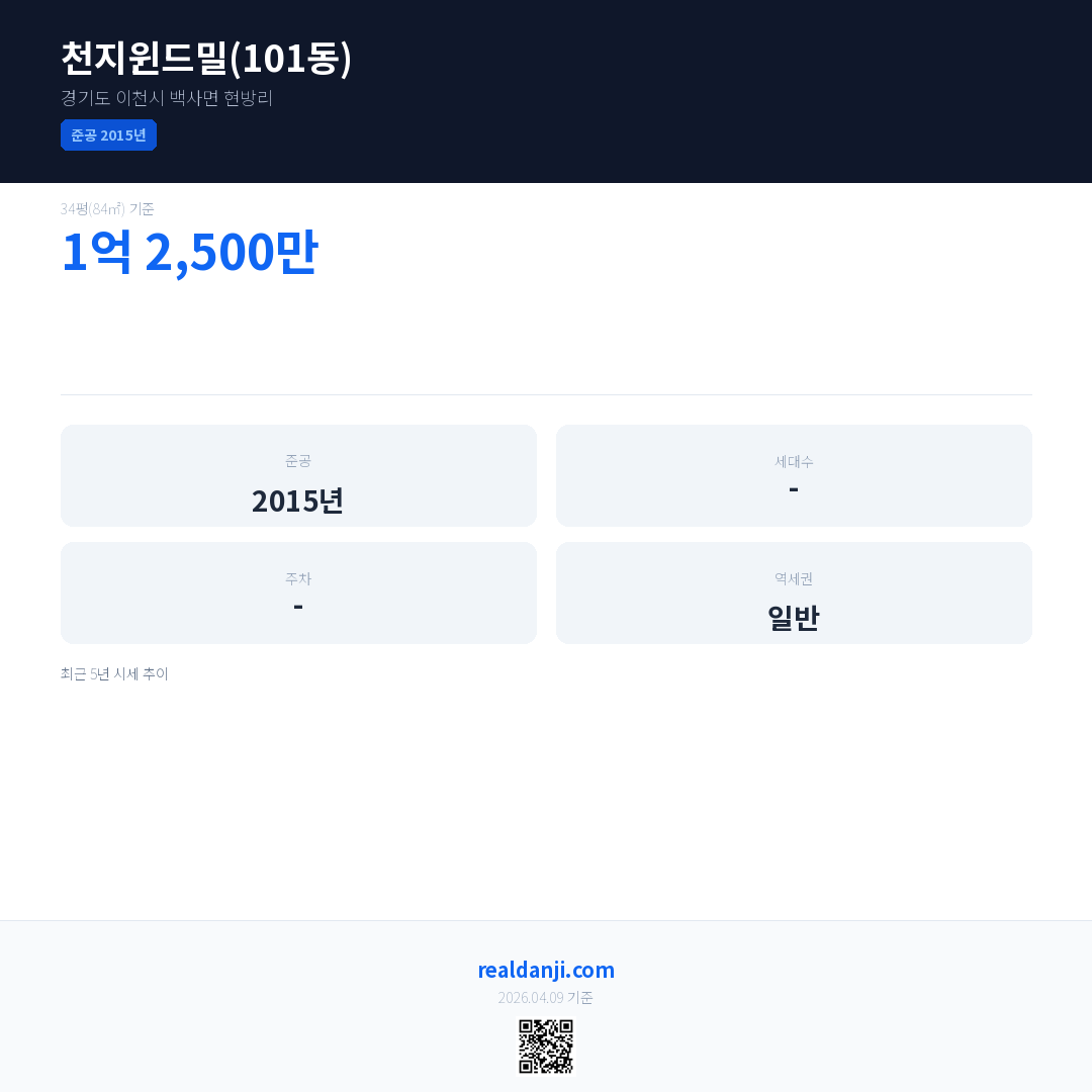 천지윈드밀(101동) 최근 거래가는 1억 2,500만입니다. (2026-01)