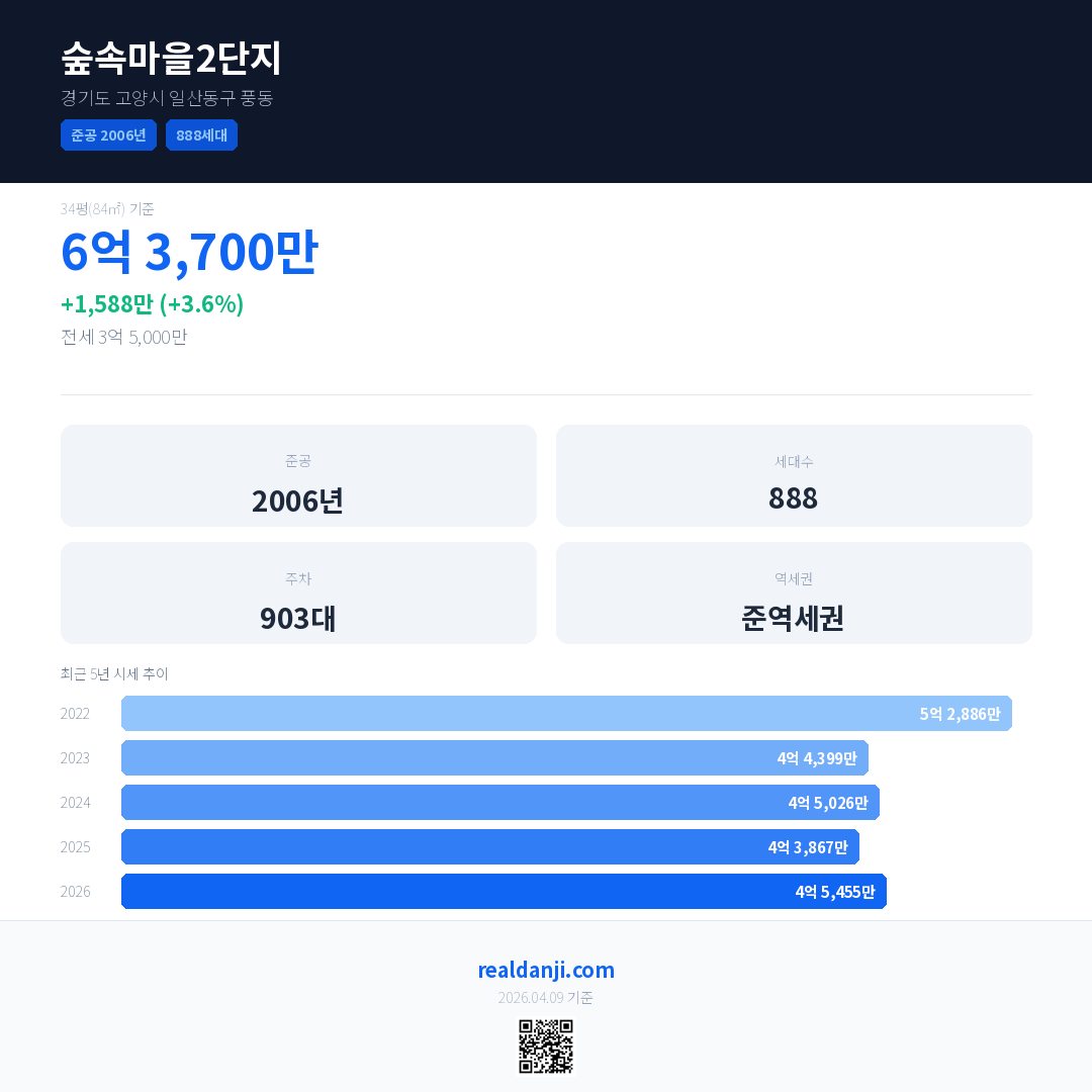 숲속마을2단지 최근 거래가는 6억 3,700만입니다. (2026-03)