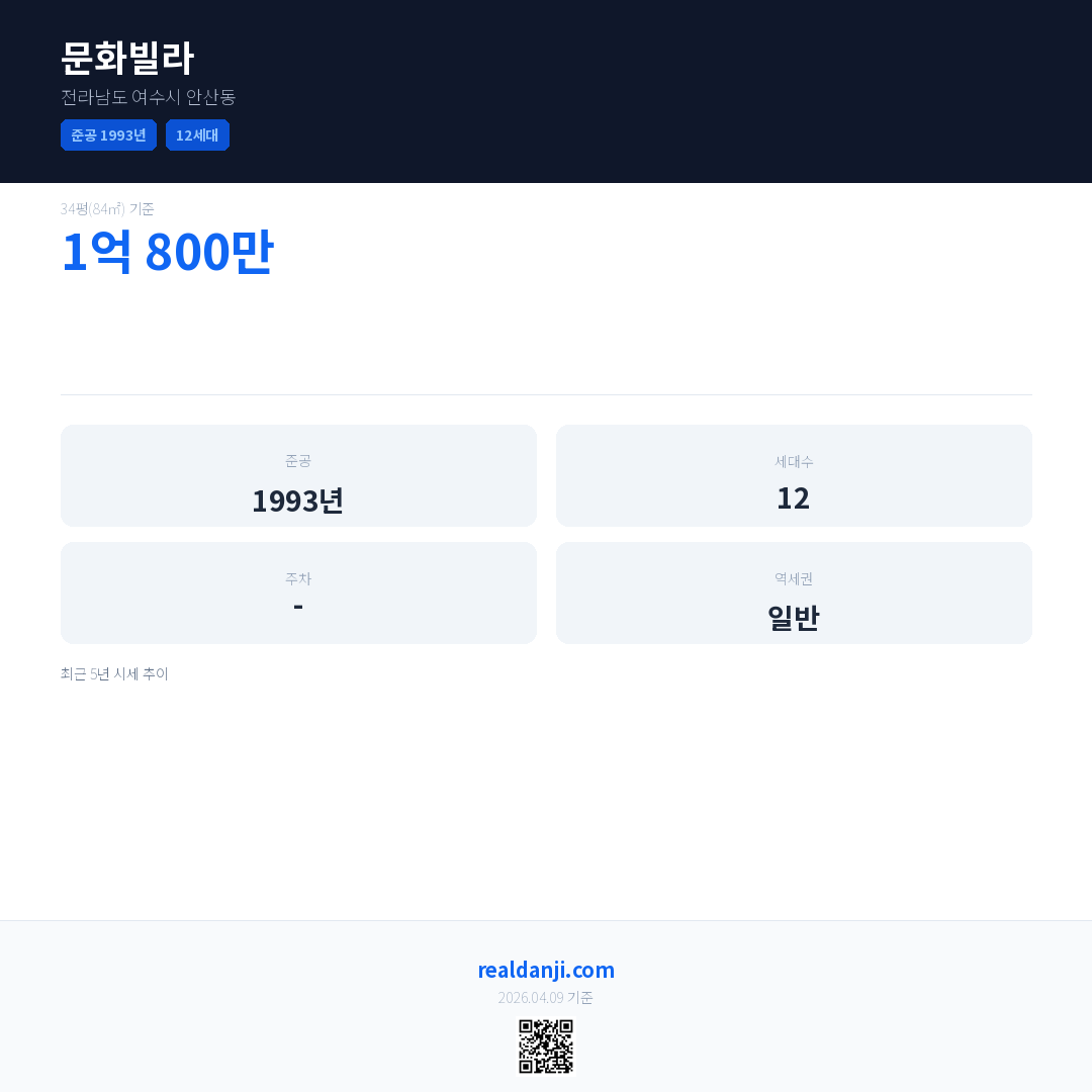 문화빌라 최근 거래가는 1억 800만입니다. (2020-08)