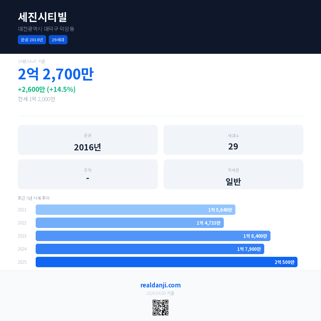 세진시티빌 최근 거래가는 2억 2,700만입니다. (2025-09)