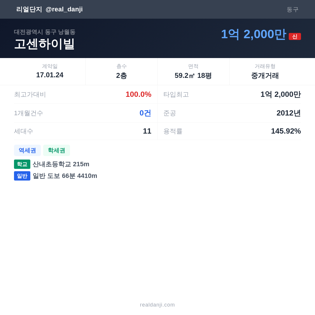 | 2017.01.24 | 59㎡ | 2층 | 1억 2,000만 |