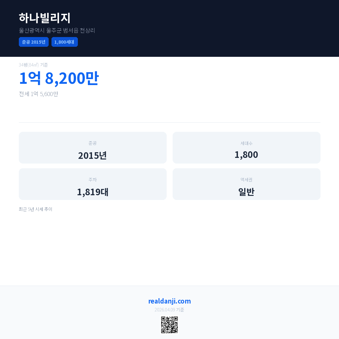 하나빌리지은(는) 2015년에 준공되었으며, 현재 11년차입니다. 총 1,800세대 규모입니다.