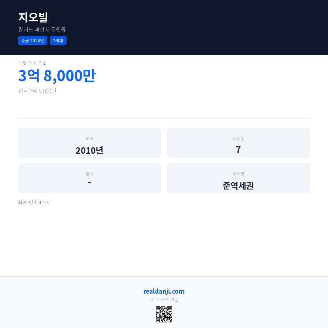 지오빌 최근 거래가는 3억 8,000만입니다. (2022-05)