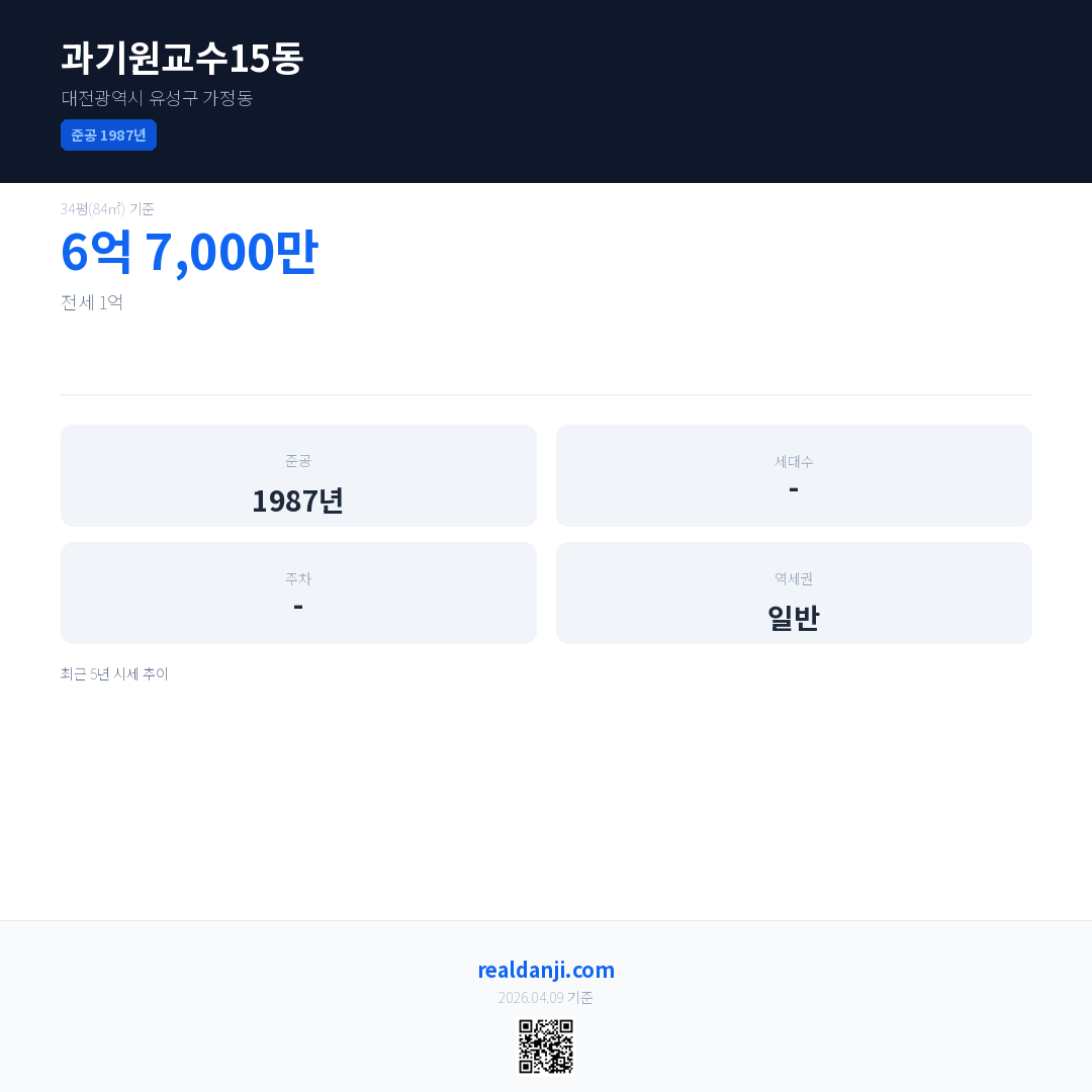 과기원교수15동 최근 거래가는 6억 7,000만입니다. (2018-03)