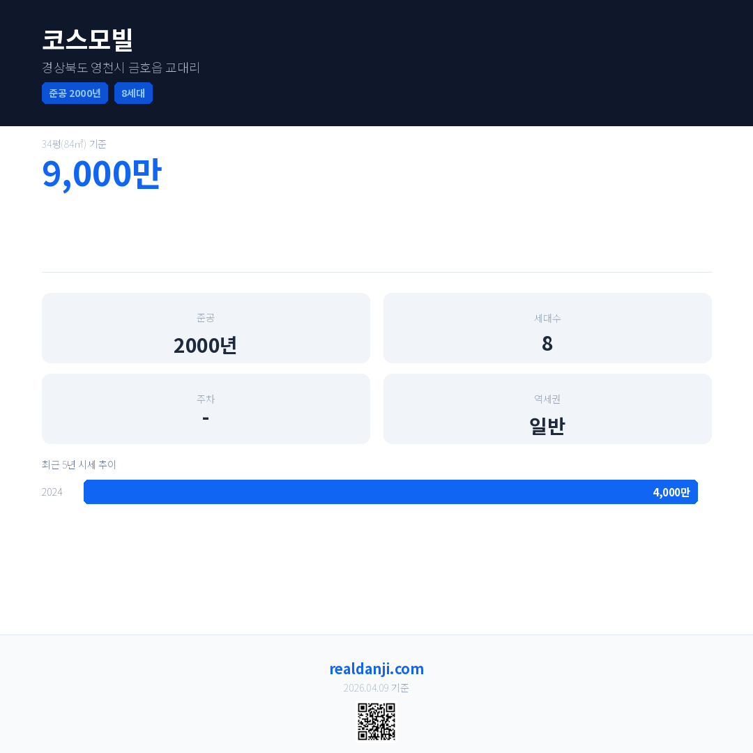 코스모빌 최근 거래가는 9,000만입니다. (2024-01)