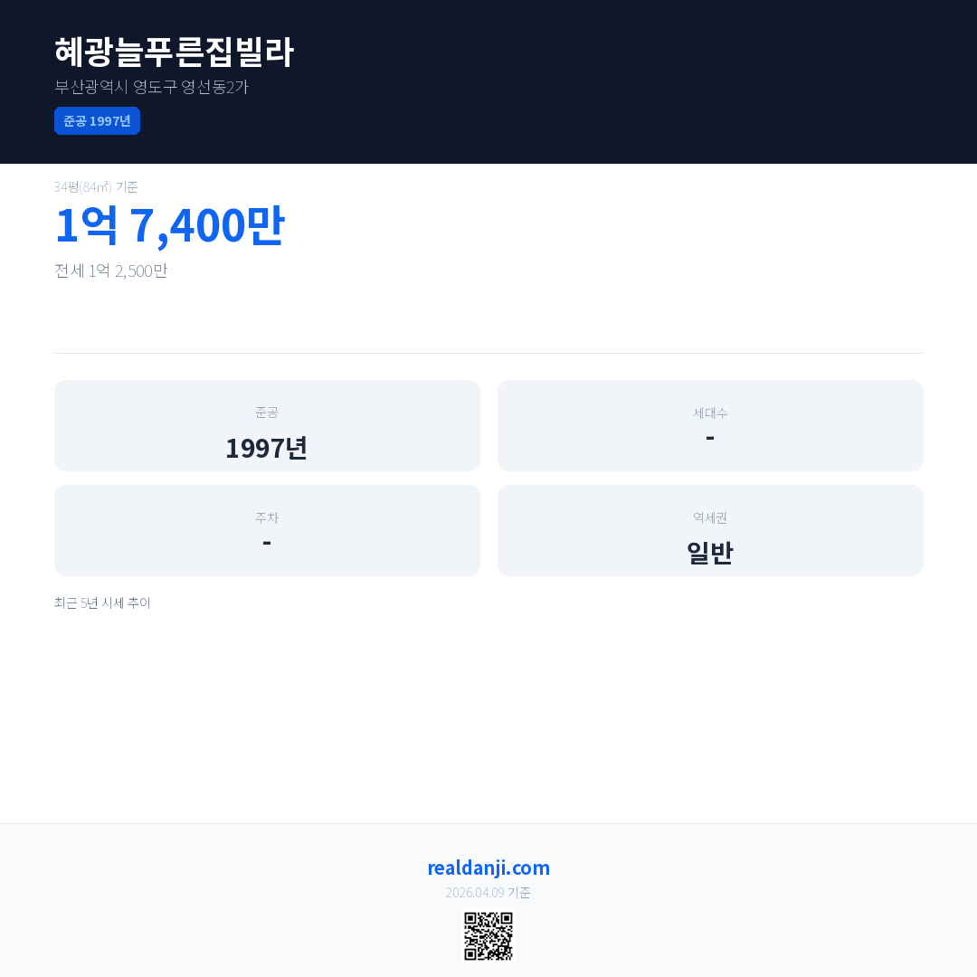 혜광늘푸른집빌라 최근 거래가는 1억 7,400만입니다. (2018-08)