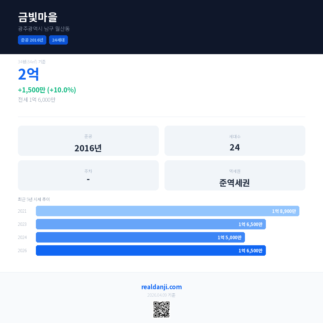 금빛마을 최근 거래가는 1억 6,500만입니다. (2026-04)